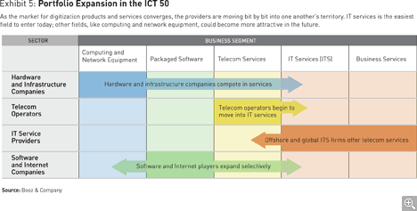 For companies buying ICT services, the convergence of the ICT 50 promises to be very exciting. As the ICT 50 companies compete across boundaries, winners will emerge that are more innovative, more responsive to customers, and able to deliver more at lower costs. But how should the different sectors position themselves?