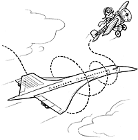 The technical challenges, however, were forbidding, ranging from heat management to engine reliability to fuel storage. Most daunting of all was the so-called compressibility drag problem. When a plane moves through the air, it creates sound waves. In a normal subsonic flight, some of those waves travel forward, preceding the plane. They have the effect of smoothing the air, dramatically reducing wind resistance, or drag. When a plane flies at supersonic speeds, however, it outraces its own sound waves. The air compresses in front of it, creating a shock wave that makes for a turbulent and inefficient flight. Many aviation experts believed that the drag problem alone would doom any attempt to build a supersonic passenger jet.