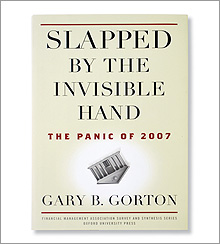 In the best business book of the year on the economy, Slapped by the Invisible Hand: The Panic of 2007, Gary B. Gorton of Yale University’s School of Management explains in some detail how in August 2007, the financial markets found themselves in the grip of a phenomenon thought to have been rendered impossible by various safeguards: a banking panic of the sort that rocked global capitalism a dozen times between 1837 and 1907. This time, however, the spectacle did not consist of individual depositors lined up outside the locked doors of retail banks, but rather firms creating runs on other firms. Instead of some familiar physical address, this occurred at the intersection of the securitization business and the shadow banking system, two enormous industries that had barely existed 25 years earlier.