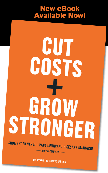 In Cut Costs, Grow Stronger, a 54-page e-book published as part of the Harvard Business Press "Memo to the CEO" series, Booz & Company’s Shumeet Banerji, Paul Leinwand and Cesare Mainardi provide executives with the tools they need to rapidly implement capabilities-driven cost reduction. First they demonstrate how to identify and clearly articulate your company’s key capabilities–not just core competencies or skill sets, but those very few strengths that, in combination, define how your organization competes. You can then use this information to create your company’s unique blueprint for effective and efficient cost reduction. The authors’ detailed, step-by-step framework walks you through the process, which can be completed in as little as two or three months–it’s something that you can do now.