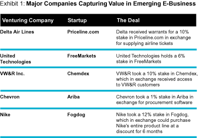 Over the past five years, numerous U.S. corporations have been spectacularly successful at investing in startups. By building portfolios of early-stage investments, companies such as the Intel Corporation and Cisco Systems Inc. have developed enormous strategic advantages and made very attractive returns in the process. (See Exhibit 1.) Such corporate venturing has become a phenomenon central to the New Economy, and as established companies strive to keep in touch with the cutting edge of new technologies, fight off dot-com challengers, and find new markets for their core products, they too have joined the game.
