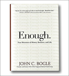 That same sense of commitment lies at the heart of John C. Bogle’s Enough: True Measures of Money, Business, and Life. The germ for this book and its title come from a story about writers Kurt Vonnegut and Joseph Heller. At a party given by a billionaire hedge fund manager, Vonnegut informs Heller that their host makes more money in a single day than Heller has earned in total from his wildly popular novel Catch-22. Heller responds, “Yes, but I have something he will never have...enough.”