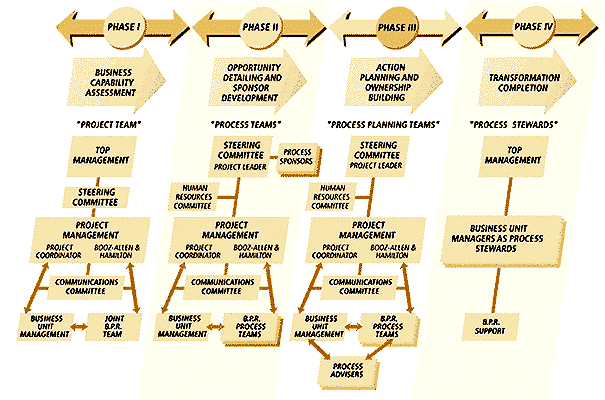 The dramatic redesign of a company's business systems and processes is a significant task, which eventually requires the understanding and involvement of many, if not all, of the organization's employees. In numerous cases, an objective of the change process is to refocus the culture of the company to become more oriented to the customer and to performance. To accomplish this task requires more energy than the C.E.O. can personally direct.