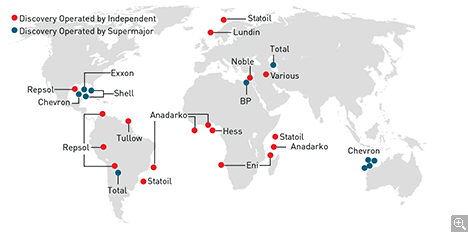 The six integrated “supermajor” oil companies that once dominated oil and gas exploration are losing ground to independent companies. Since 2000, smaller competitors have been increasingly active in finding and developing new fields: In 2010 and 2011, they made an estimated two-thirds of the significant private-sector discoveries.
