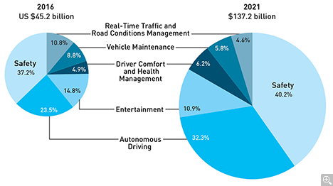 As the demand for connected car features increases, automakers could see an increase in revenue as high 204 percent over the next five years.