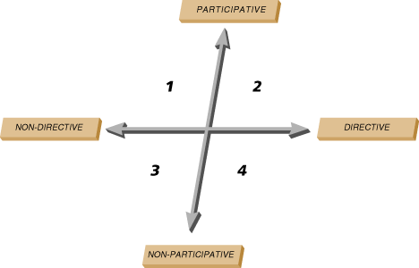 What typically happens is that the C.E.O. starts in quadrant 4 prior to establishing a team. Because he confuses the two dimensions, he then moves to quadrant 1 (participative and non-directive) with the resulting frustrations associated with that approach. In some cases, he then does away with the team and returns to quadrant 4, while in other cases, he recognizes that he has a role in directing the process of the team, and moves to quadrant 2.