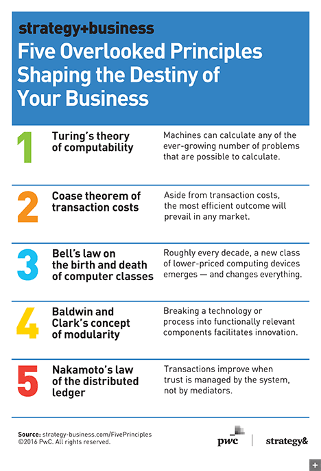 If you’re in business in the 2010s, an understanding of these five principles is crucial, because digital disruption is quickly becoming the new normal. Many growth strategies that may have worked well in the past no longer pack a punch. The principles help explain not just what will happen to your company next, but why.