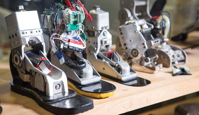 The education would continue at MIT’s Department of Mechanical Engineering. While he was considering graduate schools, Herr was given a personal tour of the Newman Laboratory for Biomechanics and Human Rehabilitation at MIT by Woodie Flowers, now professor emeritus. Flowers was a pioneer in using digital technologies to improve prosthetics as well as a robotics enthusiast who ran a competition (carried on public television for many years) to build robots capable of accomplishing specific tasks.