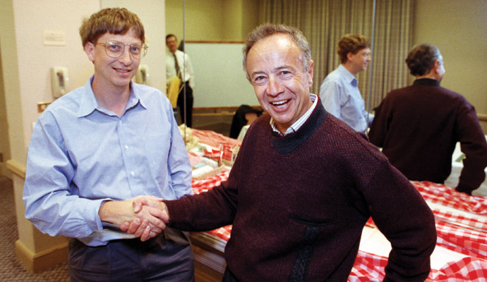 After becoming CEO in 1987, Grove presided over a golden decade in his corporate castle. Establishing Intel as the industry standard meant that manufacturers of other computer products — software, keyboards, sound systems — had to make their products compatible with Intel’s microprocessors. The company had become a de facto monopoly with profit margins of 90 percent. In the 1990s, the PC became the gateway to the Internet, which would open a new age of communication and collaboration, afford opportunities for other upstarts to challenge incumbents, and destroy and create billions in shareholder wealth. The company prospered further.