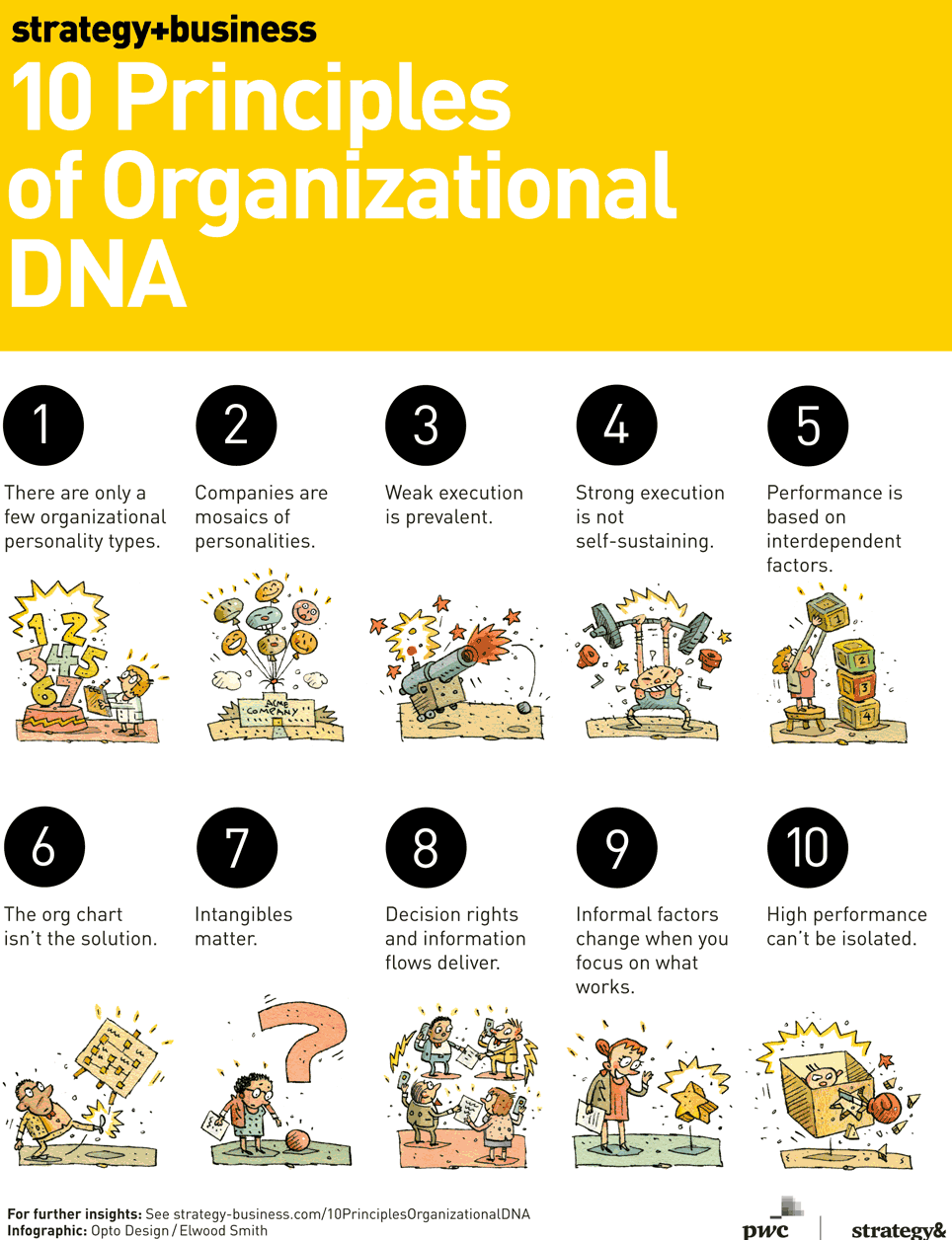 Based on 10 years of organizational design (“organizational DNA”) research and 220,000 diagnostic surveys, here’s what we’ve learned about building high-performance companies. See also “Unlocking your organizational DNA.”