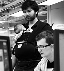 I explained our practice of allowing new parents to bring their babies in all day, every day.