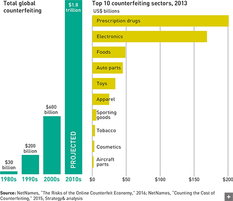 By 2020, fake goods may cost the global economy annually about three times what they did from 2000 to 2010. The prescription drug industry is hardest hit. Even in secure markets, an estimated 1 percent of drugs are counterfeit.