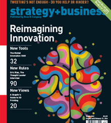 In concert with a provocative headline, subhead, and pull quotes, images and illustration can effectively coax the reader into the story. Conceptual illustrations do what words cannot. They reject realism for surrealism, literalism for metaphor, and invite interpretation. Illustrations are veritable Rorschach tests with multiple meanings. Some contain optical illusions and witty ideas. Some are strikingly designed yet simply rendered. Some are perfectly apt for one story but general enough to also be illustrative of others. Often, you have to look at them two or three times before really getting them. Strategy+business’s images make the often daunting task of reading complex data just a tad more enjoyable — not just as diversions but by enhancing the cognitive experience.