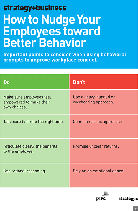 Successful nudging involves a delicate balance of preserving employee autonomy and articulating the benefits of following through.