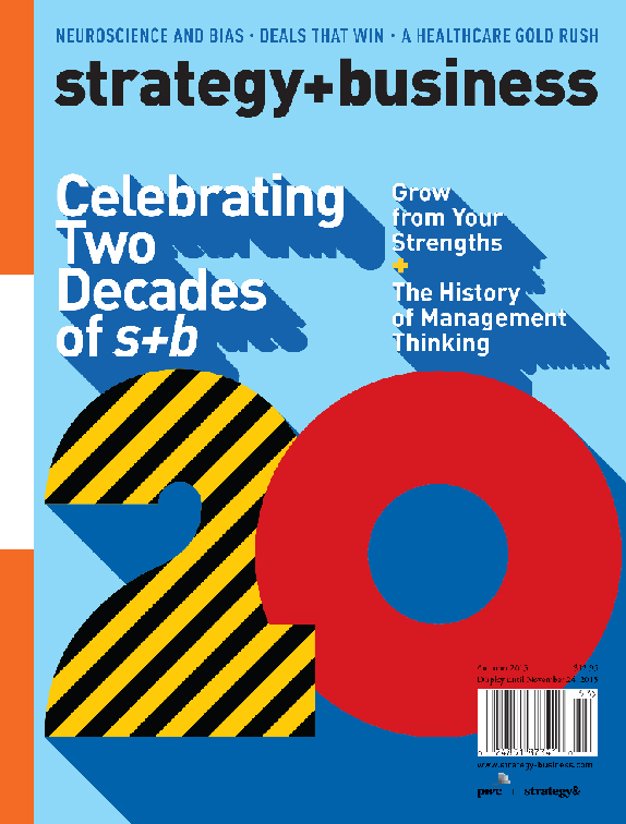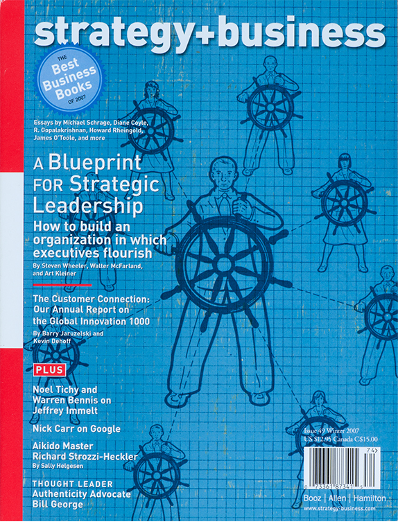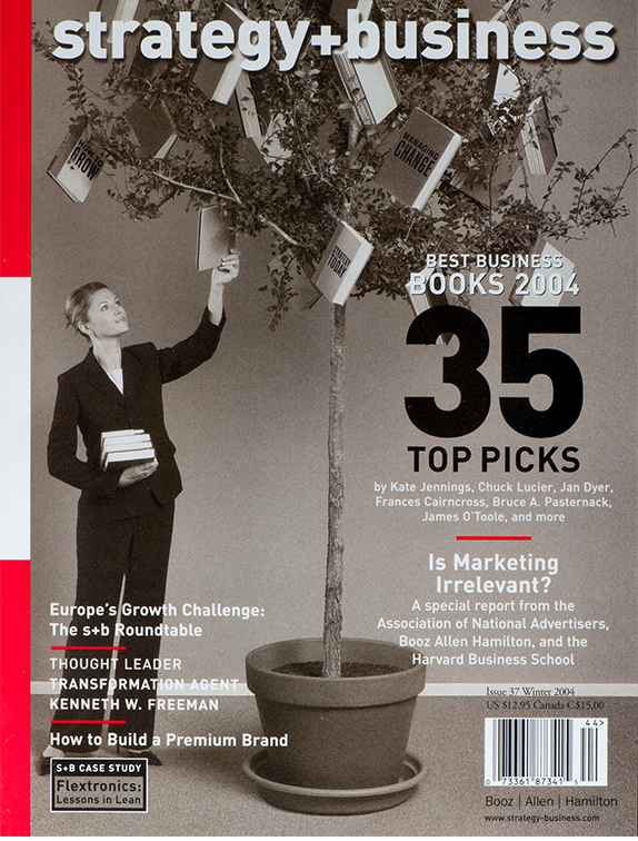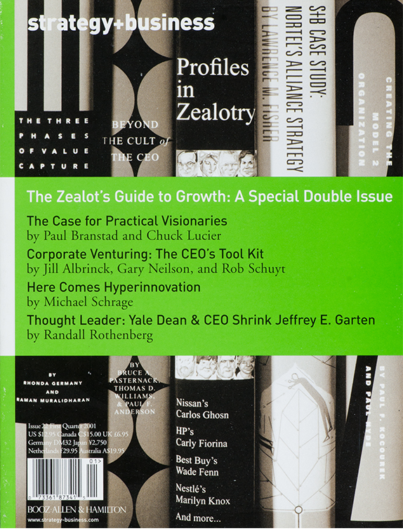 Looking back on 25 years of covers also gives me a chance to remember the contributions of colleagues at Opto Design who I’ve been lucky enough to work with on strategy+business: Brad Simon, Jessie Clear, Seulgi Ho, and Kira Csakany, as well as the current team of Laura Eitzen, Jennifer Thai, and Leigh Jagareski. I thank them for their creative work on these covers.