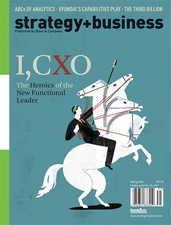 Though not our first use of illustration on a strategy+business cover (that would be s+b 49, which can be seen below, under “Notable covers”), this drawing by Keith Negley is still an s+b landmark because it shows that illustration can be a powerful tool for expressing abstract topics. Negley’s executive equestrian atop a multi-headed horse captures the complexity of the changing role of a functional leader — and even adds a bit of heroism.